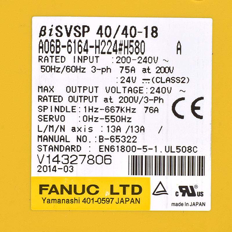 فينڪ ڊرائيو A06B - 6164 - H224 # H580 فينUU BISUSSS 40/40 - 18/40 - 18/40 -